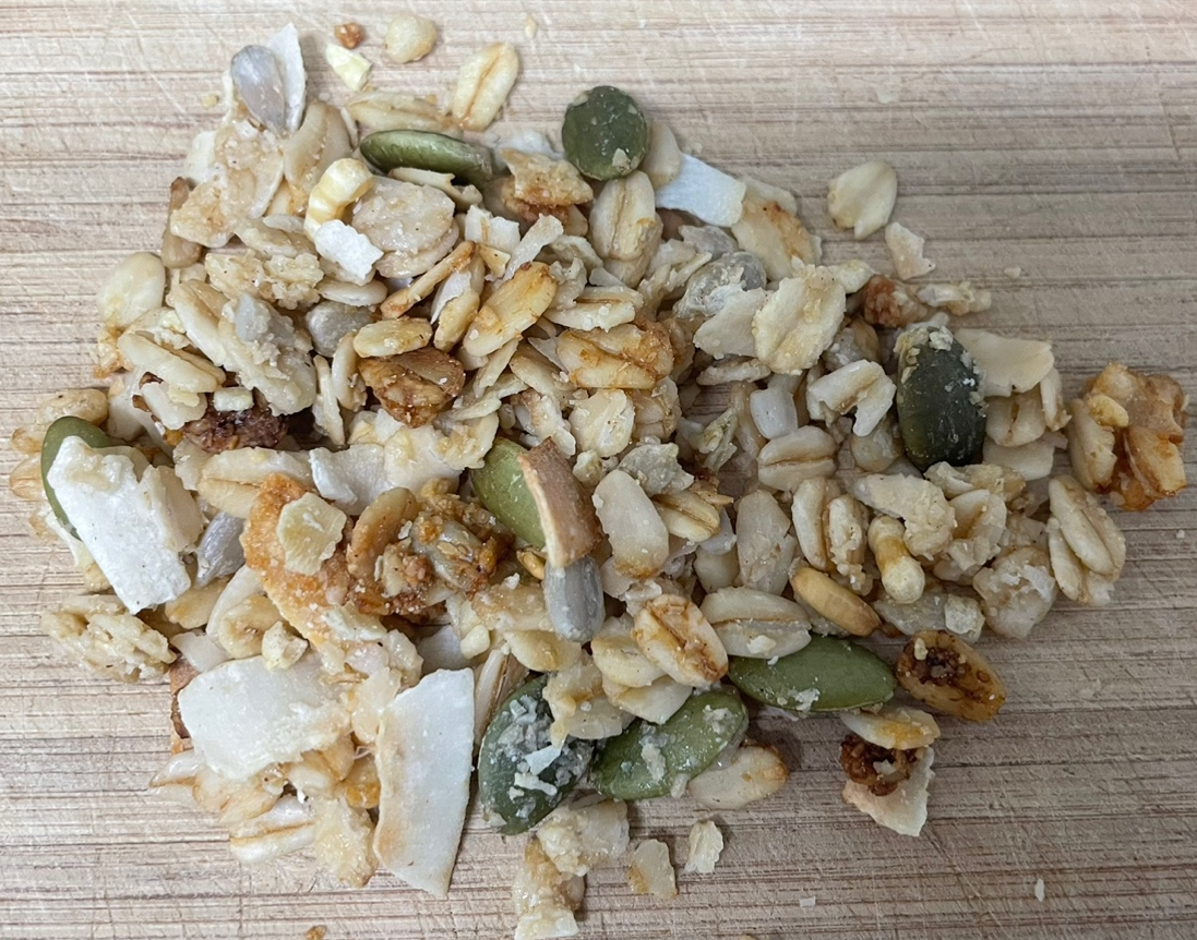 제품설명 : 살짝 구운 코코넛, 해바라기씨와 호박씨의 맛있는 조합에 호주 부시 허니로 버무려 시나몬 가루를 살짝 더한 그래놀라입니다.